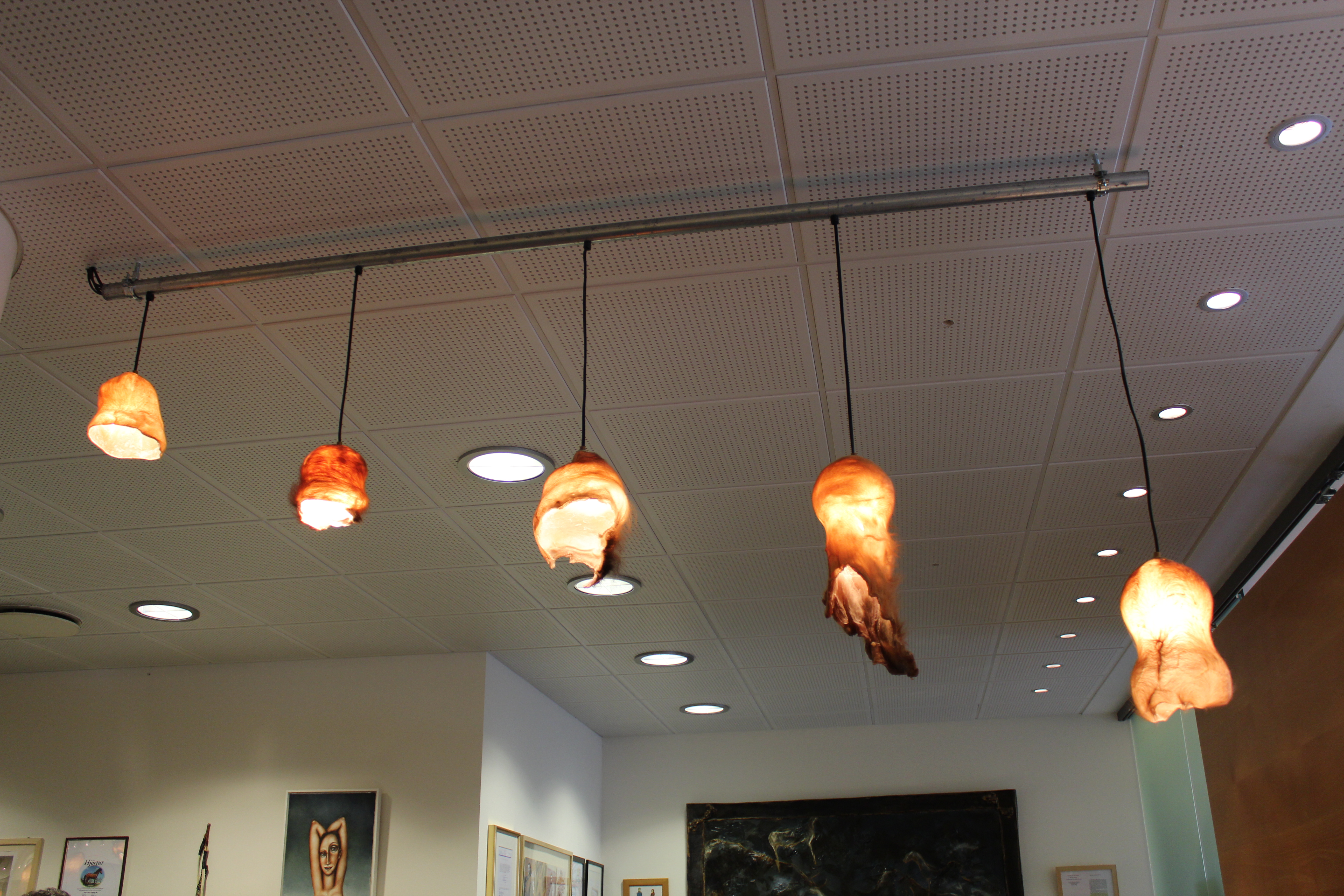 Bull scrotum lampshades.