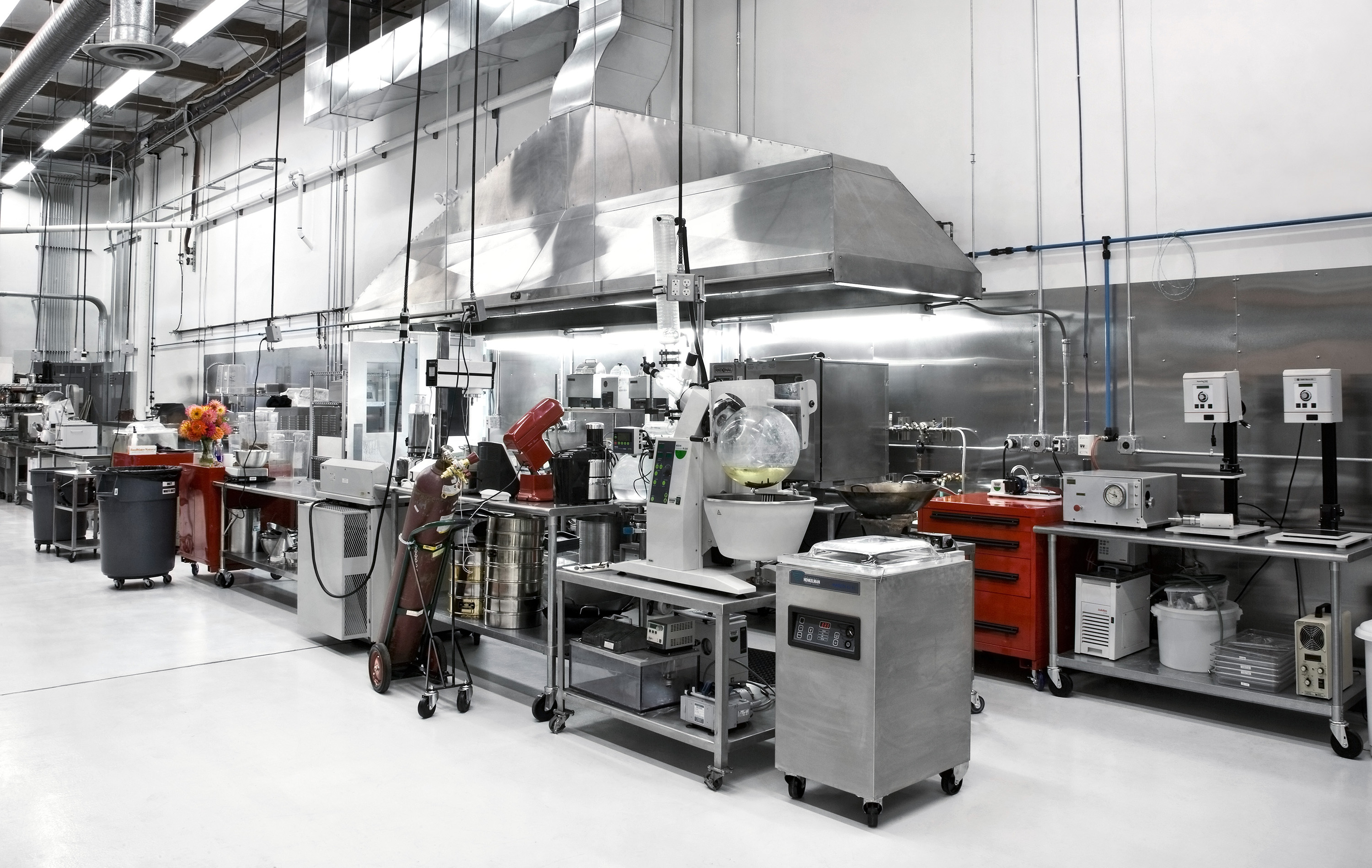 Apparently there is a related cooking show, which I’ve never seen. So, in my imagination, the test kitchen looks like some of the labs I’ve peered into—long benches filled with people at work, with interesting-looking instruments, wild thin-walled glassware, goggles, thermometers.