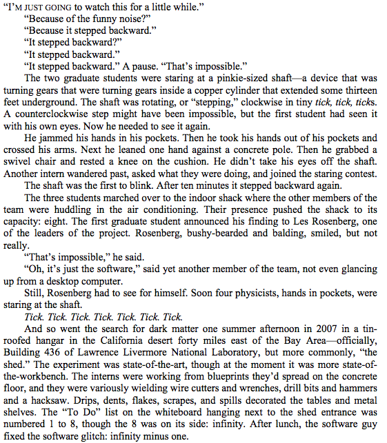 * For the curious, here’s the excerpt I mentioned—the beginning of Chapter 10 in The 4% Universe: Dark Matter, Dark Energy, and the Race to Discover the Rest of Reality: