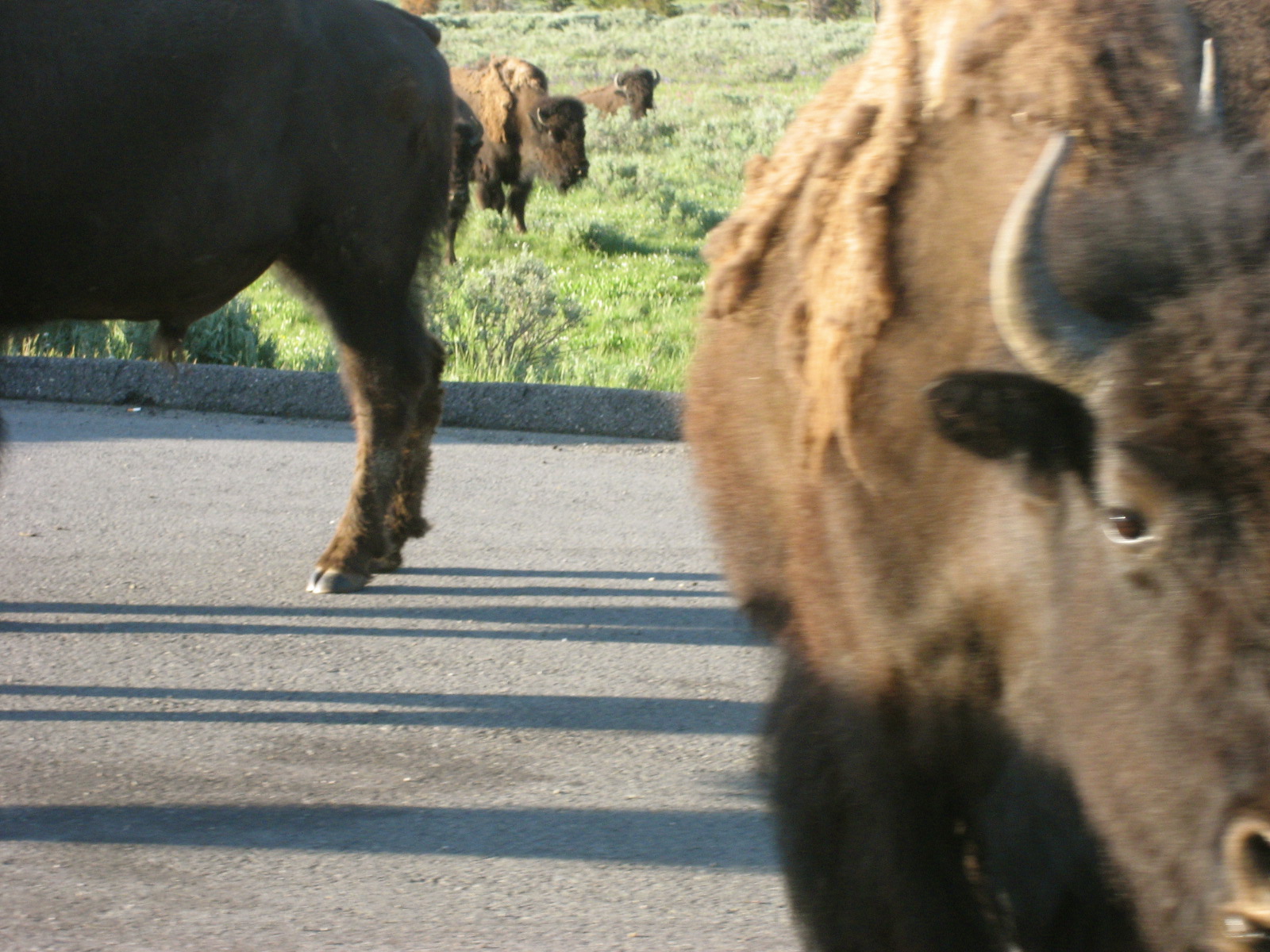 Photo by Cassandra Willyard. My husband and I got stuck in a buffalo-induced traffic jam for more than an hour in Yellowstone in 2008. By the time we finally started moving again, he was exceedingly annoyed. When we passed the bison that had caused the backup, I asked him to slow down so I could take a photo. He refused. I only managed to capture half the bison’s face.