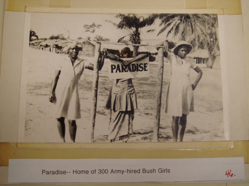 Several hundred Liberian women worked as prostitutes in three thatch-roofed camps set up to service U.S. soldiers—including one guarded by MPs to hold women infected with venereal disease (given to them by the Americans). Military doctors treated the women and when they were well allowed them back into the sex camps—which were called Shangri La and Paradise, each with 300 single-room huts for privacy, and open for business all day, but for the dinner hour.