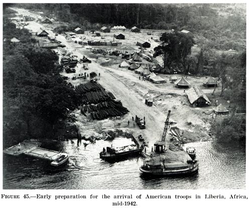 In Liberia, over 2,000 U.S. soldiers, mostly black, serviced airplanes loaded for the battles raging in the north. They guarded the rubber plantations from enemy attack. They ran mess halls and barracks for troops passing through from the United States. And they endured terrible malaria as they built runways and army camps.