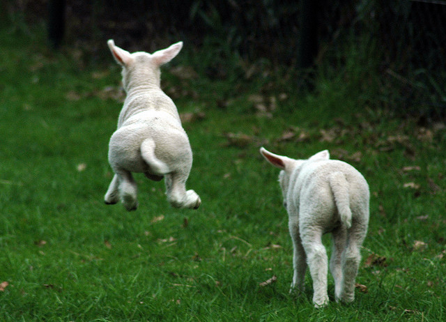 Horses do the same thing.  I grew up next to a horse farm, and in the spring the horses would run for no reason whatever, flat-out and manes flying like the kids, across the pasture, wheel, turn, and back again.  They sometimes ran in pairs, right next to each other, synchronous at top speed.   Meanwhile in our own pasture the lambs were springing around stiff-legged like little pogo sticks, boing, boing.