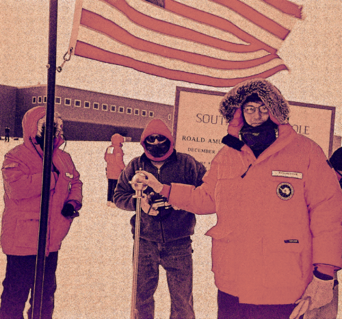 And I don’t mean the ceremonial South Pole, the striped-barbershop photo-op version, semi-encircled by the flags of the twelve nations that signed the 1961 treaty setting aside the continent for scientific pursuits.