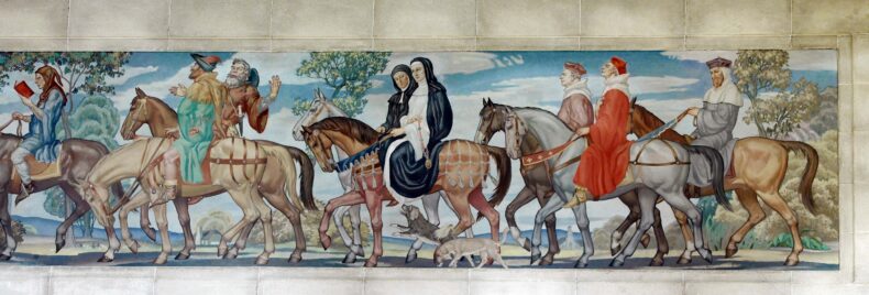 The Canterbury Tales pilgrims. Detail of Library of Congress mural, photo by Carol Highsmith.